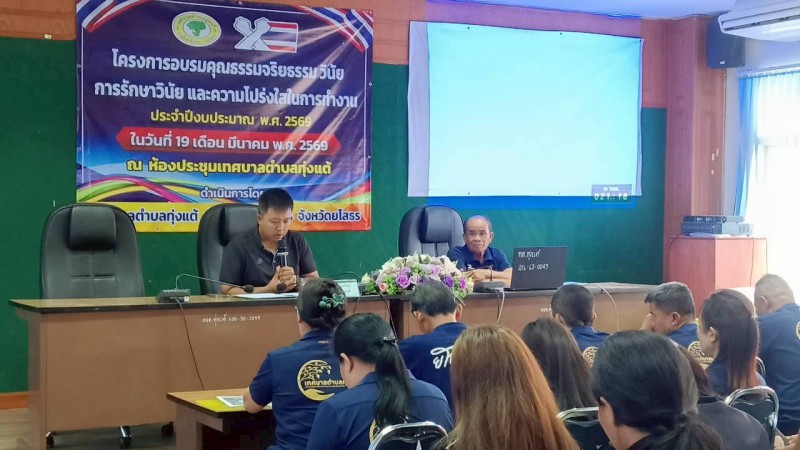 เทศบาลตำบลทุ่งแต้ จัดโครงการ “อบรมคุณธรรม จริยธรรม วินัย การรักษาวินัย และความโปร่งใสในการทำงาน” ประจำปีงบประมาณ พ.ศ. 2569