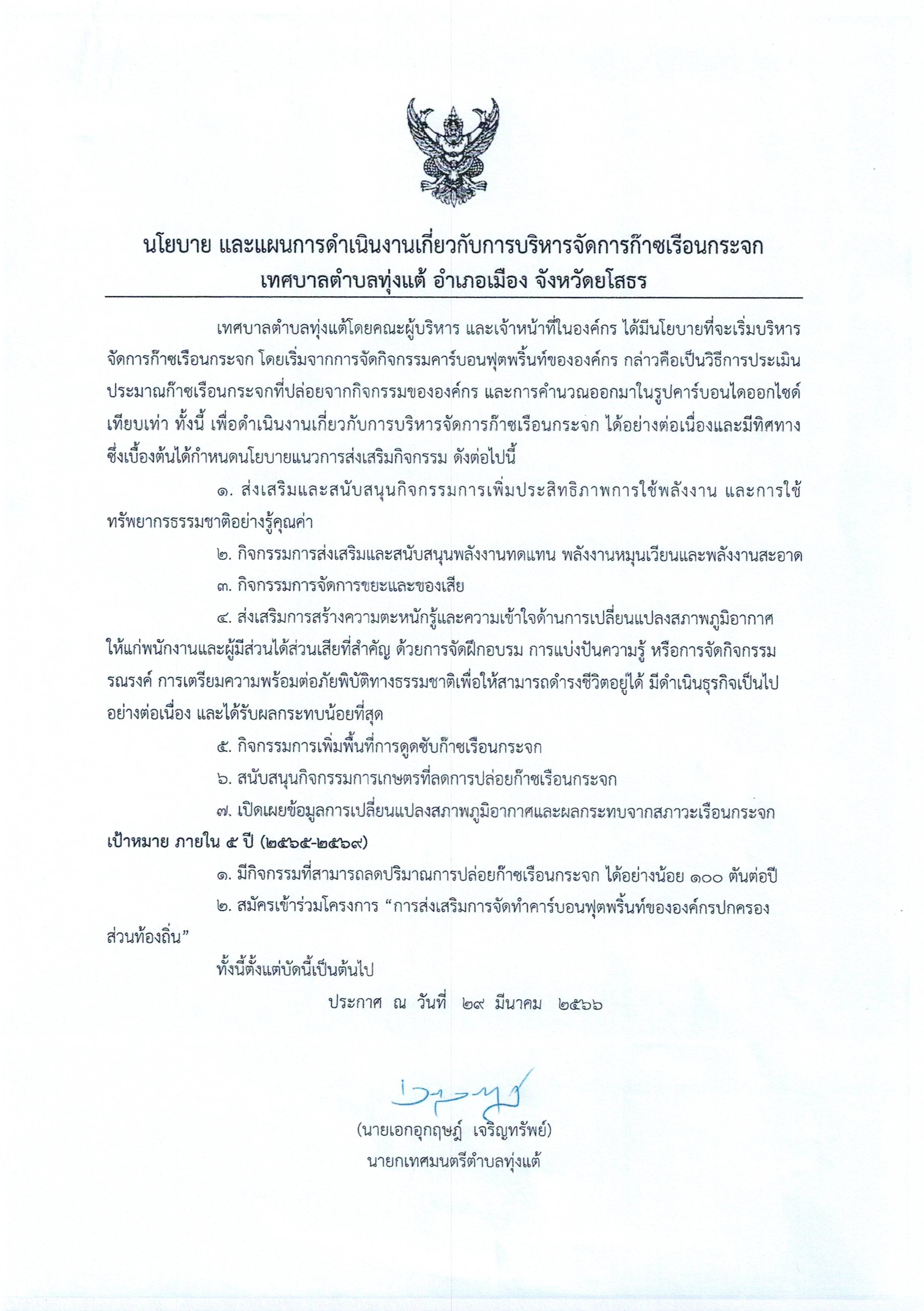 หัวข้อ :: นโยบายและแผนดำเนินงานเกี่ยวกับการบริหารจัดการก๊าซเรือนกระจก