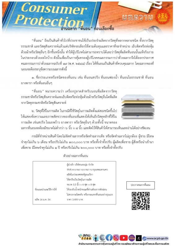 3.เรื่อง อ่านฉลาก"ที่นอนก่อนเลือกซื้อ"