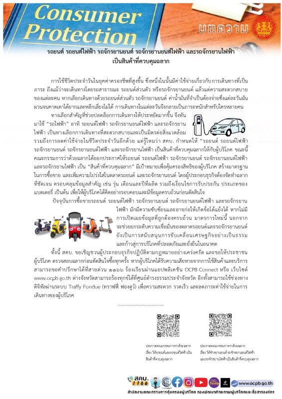 1.เรื่อง รถยนต์ รถไฟฟ้า รถจักรยานยนต์ รถจักรยานยนต์ไฟฟ้า และรถจักรยานยนต์ไฟฟ้าเป็นสินค้าที่ควบคุมฉลาก